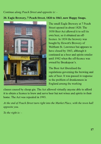 20. Eagle Brewery, 7 Peach Street, 1820 to 1863, now Happy Snaps.