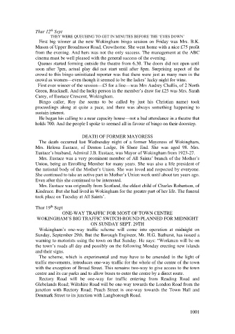 The death occurred last Wednesday night of a former Mayoress of Wokingham,