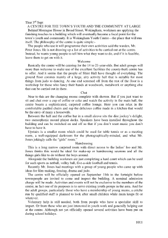 A CENTRE FOR THE TOWN’S YOUTH AND THE COMMUNITY AT LARGE