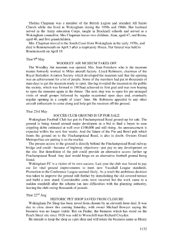 Wokingham councillor. Mrs Chapman leaves two children, Alan, aged 47, and Roma,