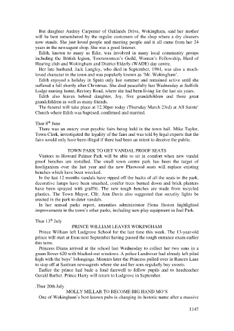 suffered a fall shortly after Christmas. She died peacefully last Wednesday at Suffolk