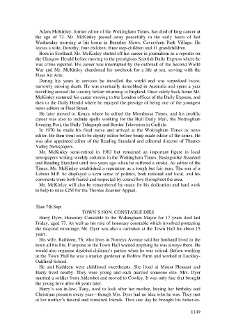 Harry Dyer, Honorary Constable to the Wokingham Mayor for 17 years died last