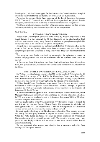 female patient, who had been trapped for four hours to the Central Middlesex Hospital