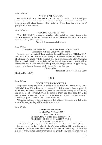 Stock in Trade of the late Mr. Newbolt solicits the continuance of the favours of his