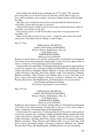 Will be held at the Old Rose Inn, on Monday the 23 of April, 1798, when the