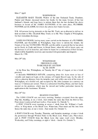 their accounts to Mrs. Elizabeth Mary Trash; or to Mr. Wm. Chaplin of Wokingham,