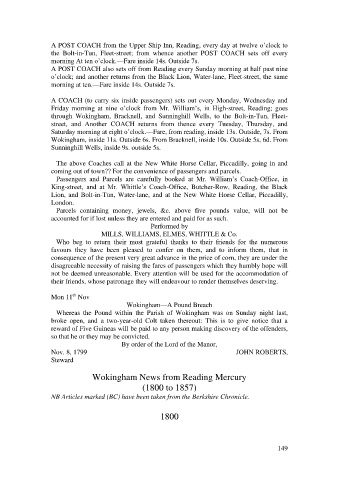 A POST COACH also sets off from Reading every Sunday morning at half past nine