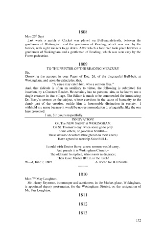 Last week a match at Cricket was played on Bull-marsh-heath, between the