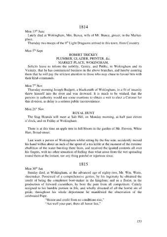 Lately died at Wokingham, Mrs. Bunce, wife of Mr. Bunce, grocer, in the Market-