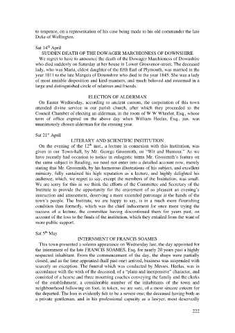 the internment of the late FRANCIS SOAMES, Esq. for nearly 20 years past a highly