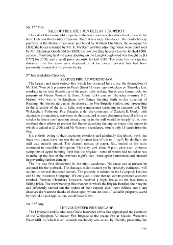 of the Wokingham Volunteer Fire Brigade at the recent fire at Messrs. Wescott’s