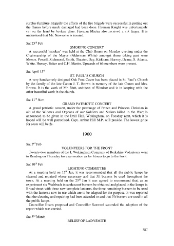 surplus furniture. Happily the efforts of the fire brigade were successful in putting out