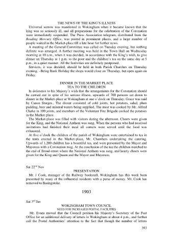 At five o’clock the children of the parish of Wokingham were entertained to tea in
