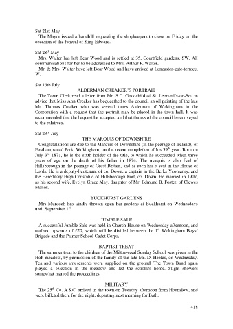 Mrs. Walter has left Bear Wood and is settled at 35, Courtfield gardens, SW. All