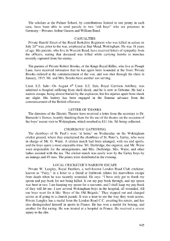the boys’ recent visit to Wokingham, which resulted in £11 16s. 5d. being collected.