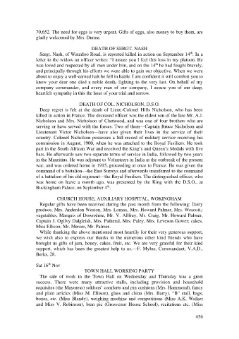Sergt. Nash, of Waterloo Road, is reported killed in action on September 14 . In a