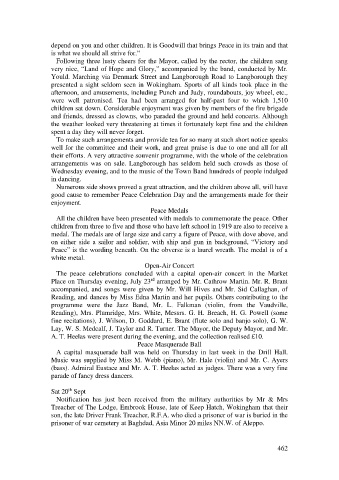 good cause to remember Peace Celebration Day and the arrangements made for their