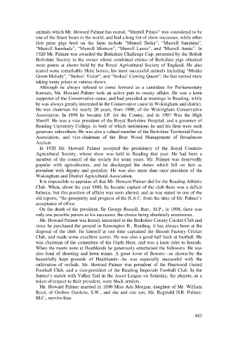 1920 Mr. Palmer was awarded the Berkshire Challenge Cup, presented by the British