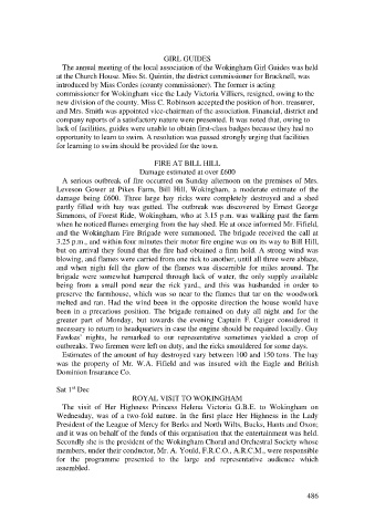 and the Wokingham Fire Brigade were summoned. The brigade received the call at