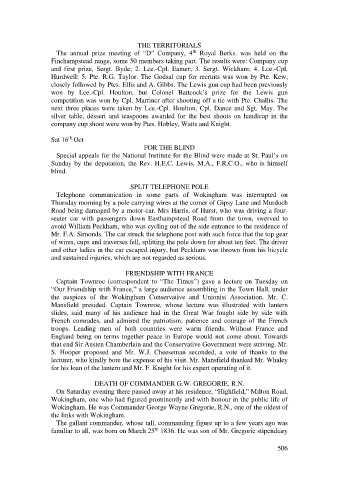 Hurdwell; 5. Pte. R.G. Taylor. The Godsal cup for recruits was won by Pte. Kew,