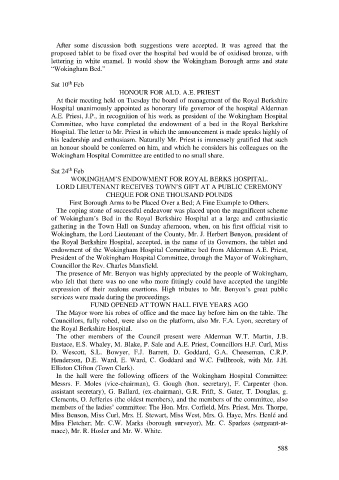 endowment of the Wokingham Hospital Committee bed from Alderman A.E. Priest,