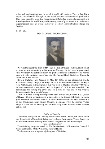 We regret to record the death of Mr. Hugh Godsal, of Queen’s Arbour, Hurst, which