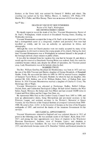 time Viscount Mountmorres was at Wokingham he endeared himself to the people of