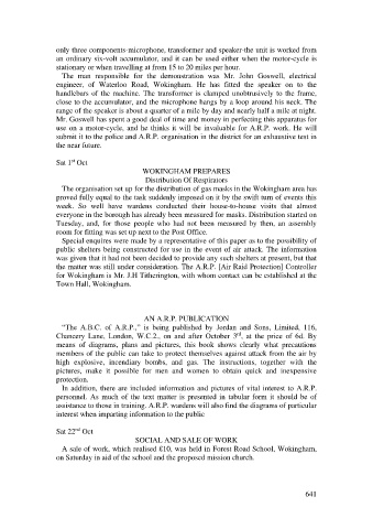 use on a motor-cycle, and he thinks it will be invaluable for A.R.P. work. He will