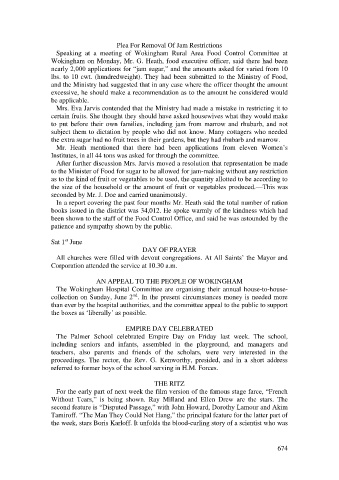 to the Minister of Food for sugar to be allowed for jam-making without any restriction