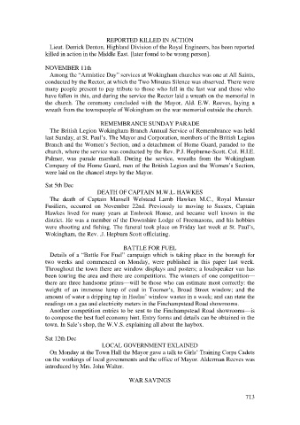 DEATH OF CAPTAIN M.W.L. HAWKES
