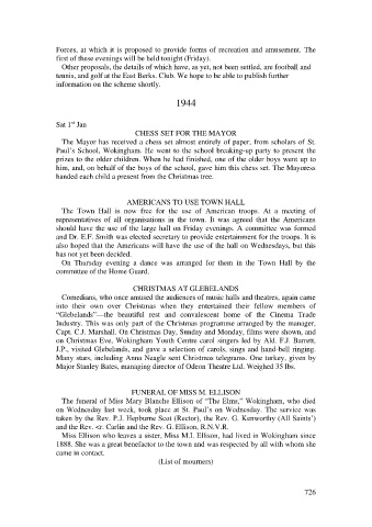 Capt. C.J. Marshall. On Christmas Day, Sunday and Monday, films were shown, and