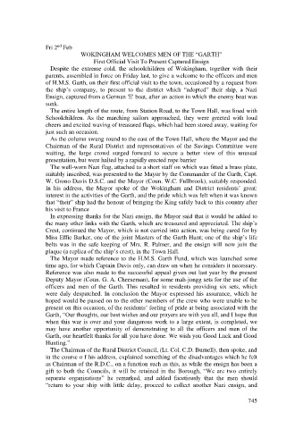 of H.M.S. Garth, on their first official visit to the town, occasioned by a request from