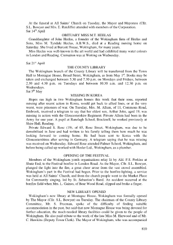 Wokingham. He also paid tribute to the work of the late Miss M. Harwood and of Mr.