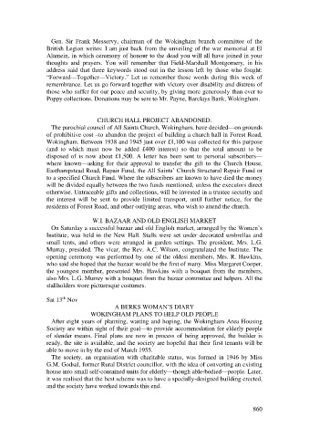 Poppy collections. Donations may be sent to Mr. Payne, Barclays Bank, Wokingham.
