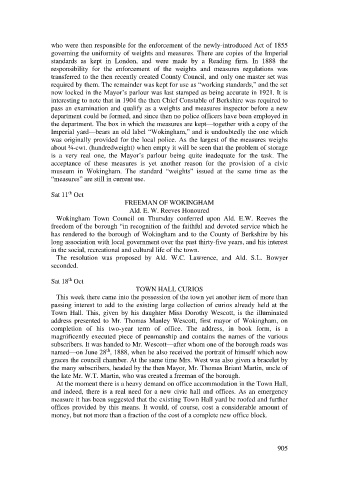 Wokingham Town Council on Thursday conferred upon Ald. E.W. Reeves the
