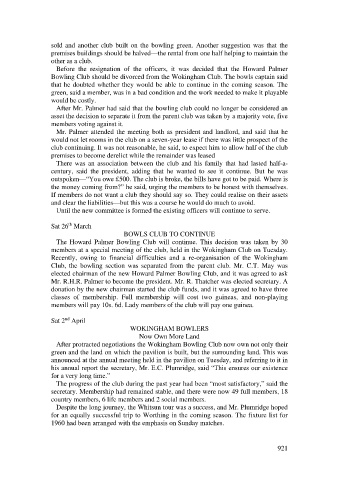 Club, the bowling section was separated from the parent club. Mr. C.T. May was