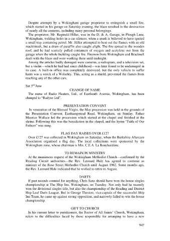 garage when the whole building caught fire. Firemen from Wokingham and Bracknell
