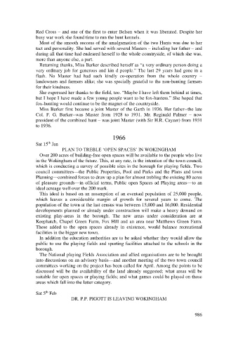 Miss Barker first became a joint Master of the Garth in 1936. Her father--the late