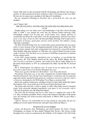 Wokingham Club, out of which grew the Howard Palmer Bowling Club.